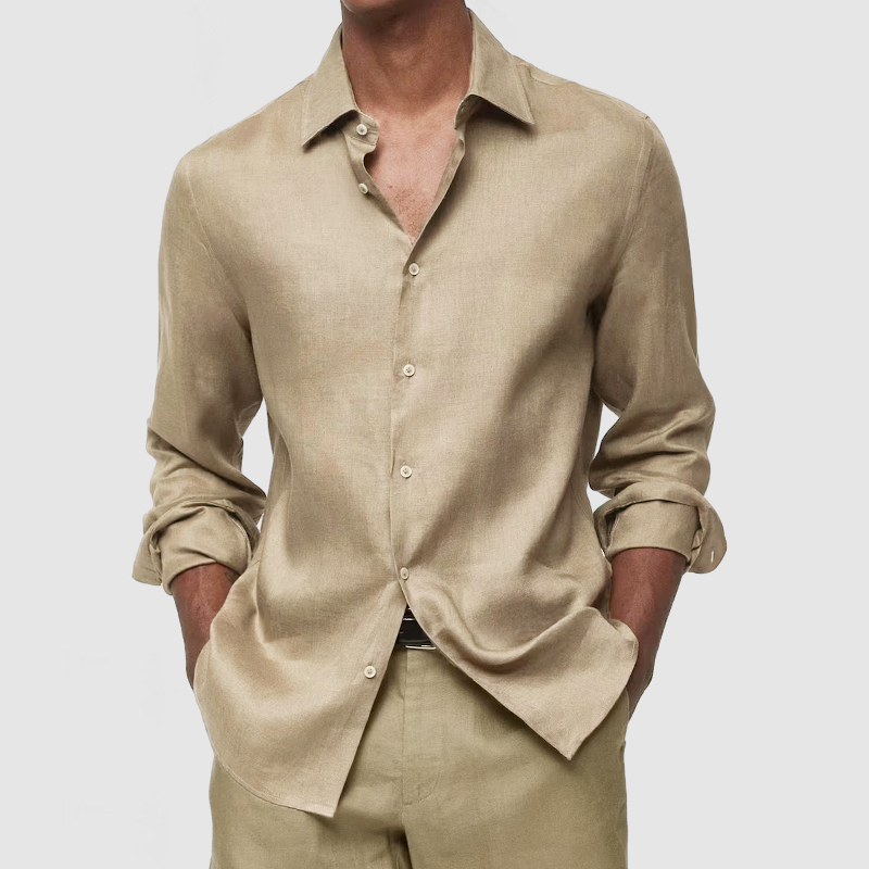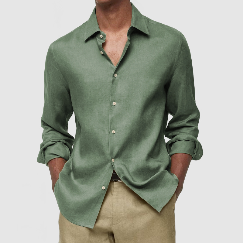 This shirt has a business-casual style element and is made from Cotton And Linen, which is extremely breathable. The sharp, tailored design of the collar and sleeves with sleek white buttons makes this shirt simple and uncluttered! This shirt goes well with any outfit, which will all be the finishing touch! Whether for outdoor sports, leisure activities or social gatherings, this shirt will keep you elegant and gentlemanly for a long time.